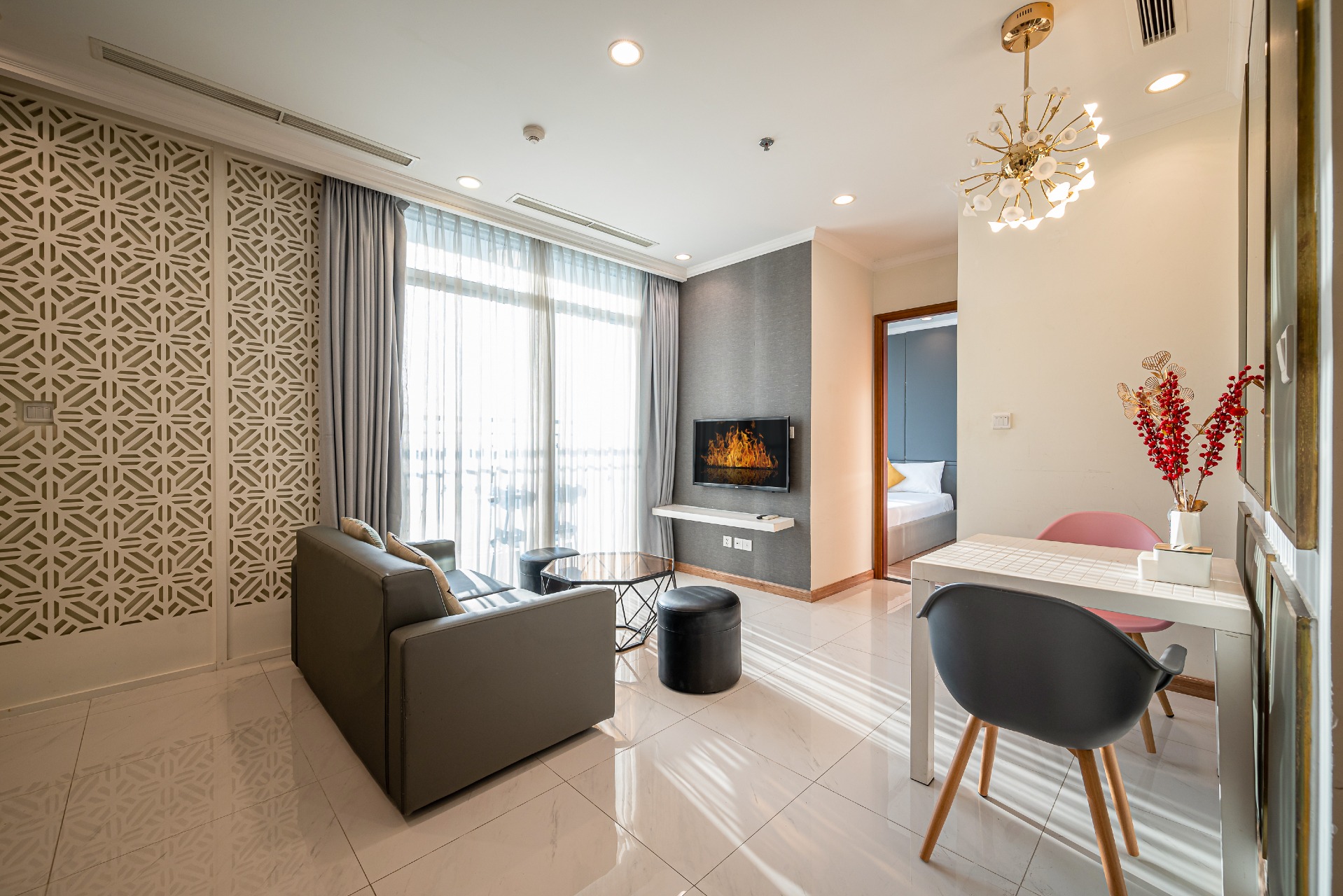Căn Hộ Vinhomes Central Park, 1 phòng ngủ, 1 phòng khách, full nội thất